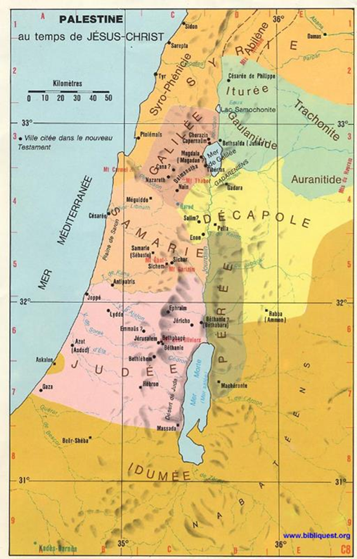 du Jourdain; Pérée et Décapole, et Gaulanitide, Iturée , Auranitide et