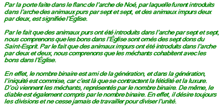 du bateau. Les tempêtes durèrent six jours et sept nuits. Au septième jour,